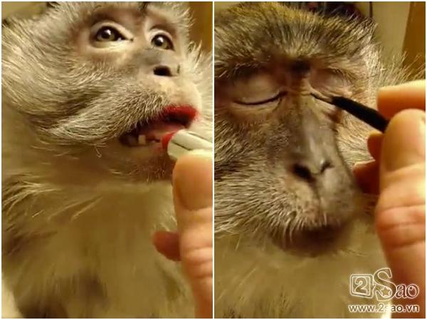 Không chỉ có mỗi Angle, cô khỉ này cũng "học đòi" make up làm đẹp