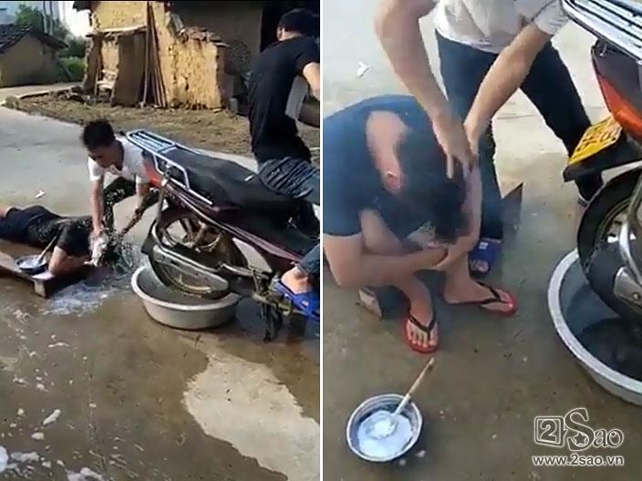 Ba thanh niên người Trung Quốc đã nảy ra "sáng kiến" dùng xe máy vào việc gội đầu. Sau khi đầu đã có dầu gội, một thanh niên ngồi trên xe dùng bánh sau "dội" nước để gội đầu.