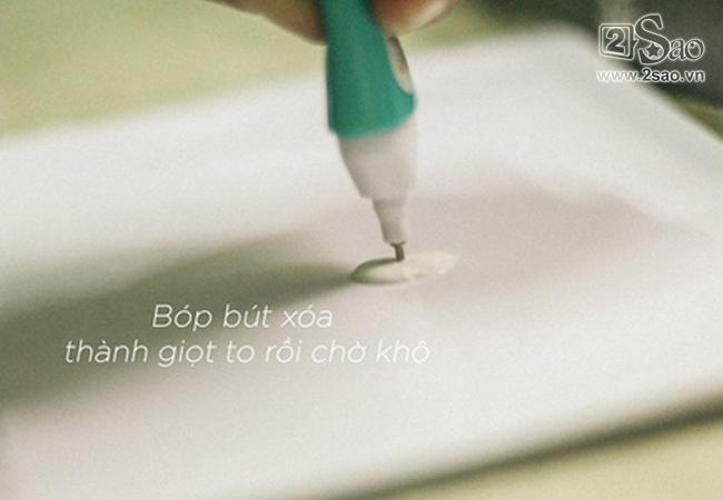 Vết bút xóa thành giọt to, chờ tới lúc khô sẽ xuất hiện một cục bút xóa trắng trắng!