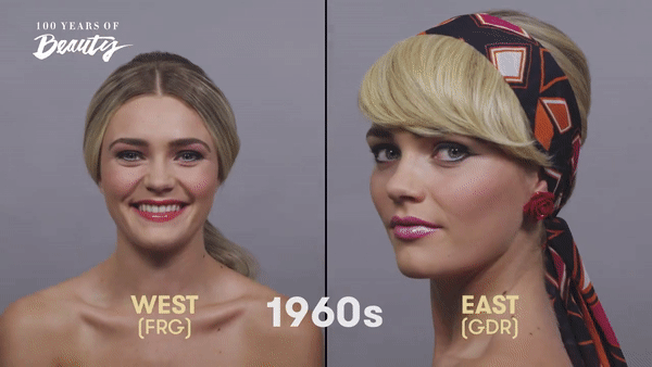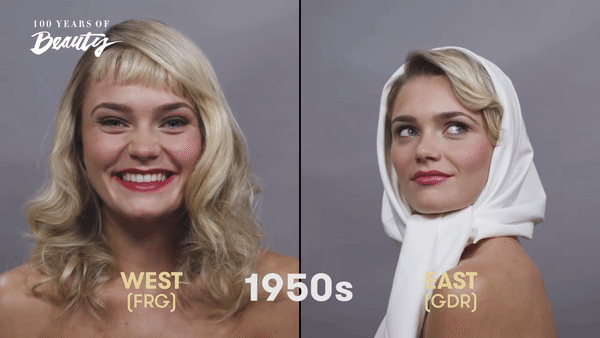 Dưới bàn tay của các chuyên gia make up, có thể thấy suốt 1 thế kỷ qua, dù thế nào phụ nữ Đức vẫn luôn giữ được vẻ đẹp gợi cảm từ kiểu tóc đến cách trang điểm. Cho đến những năm 1950, phong cách của con gái Đức đã có sự khác biệt chia thành hai miền Tây và Đông.