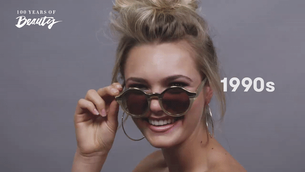 Đến những năm 1990, phong cách làm đẹp của con gái châu Âu lại quy tụ về kiểu cá tính, năng động, với mái tóc búi rối, khuyên tai to bản, kính râm sành điệu.