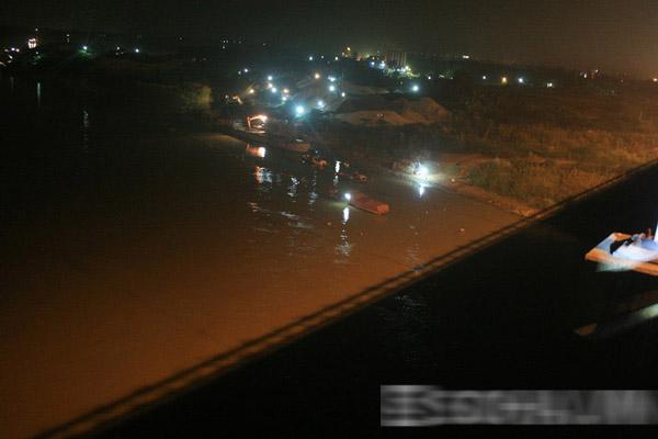 Cùng với ánh đèn trên cầu soi sáng, khu vực bờ cạnh cầu vẫn có một khu khai thác,
