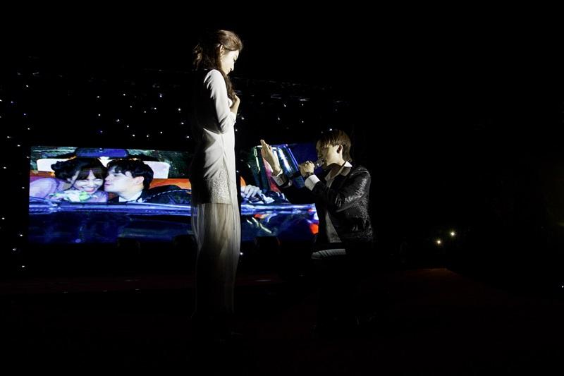 Điểm thú vị nhất chính là màn cầu hôn bất ngờ của Nguyễn Trần Trung Quân dành cho Á hậu Huyền My khi trình diễn Trong trí nhớ của anh. Trên giai điệu ngọt ngào quen thuộc, nam ca sĩ dắt tay Huyền My lên sân khấu đầy trìu mến và quỳ xuống trao nhẫn cho cô nàng.
