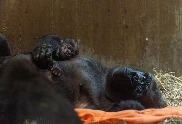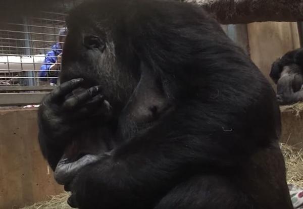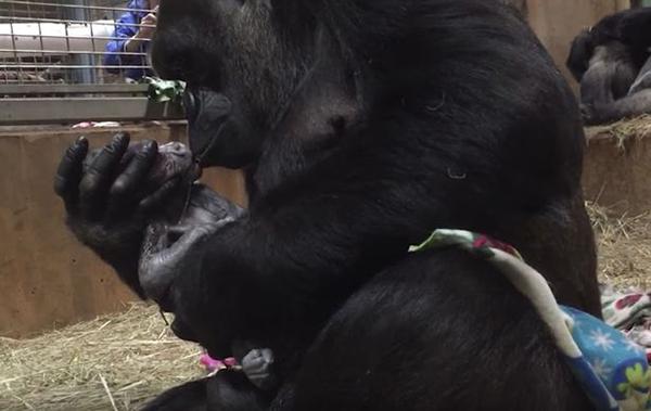 Clip khỉ đột mẹ liên tục hôn con đầu lòng mới sinh khiến dân mạng xúc động