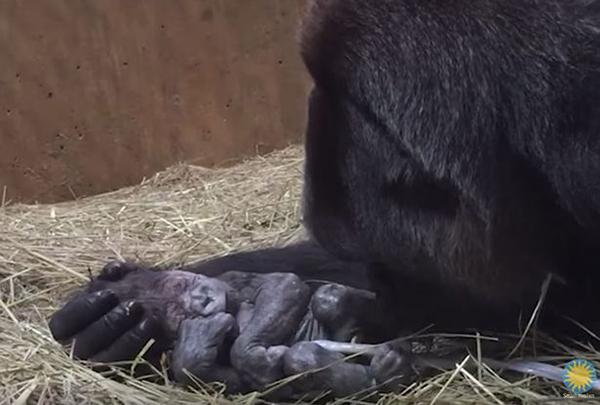 Cô khỉ đột trong đoạn clip ngắn trên tên là Calaya (15 tuổi), sống tại vườn bách thú quốc gia Smithsonian thuộc Washington D.C, Mỹ. Calaya vừa mới sinh con trai đầu lòng – Moke vào lúc 6:25 tối ngày chủ nhật vừa qua.
