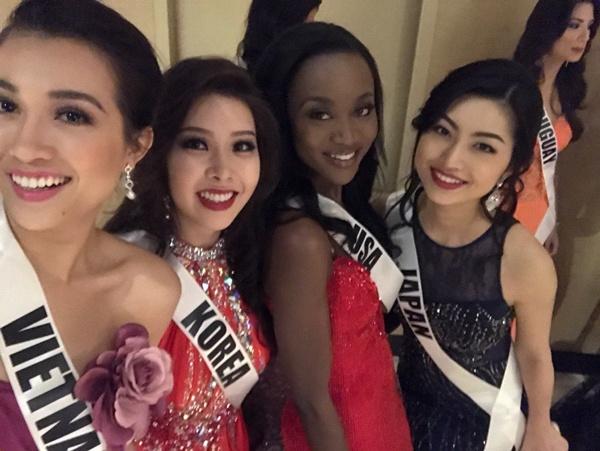 Các hoa hậu vui vẻ selfie bên nhau.