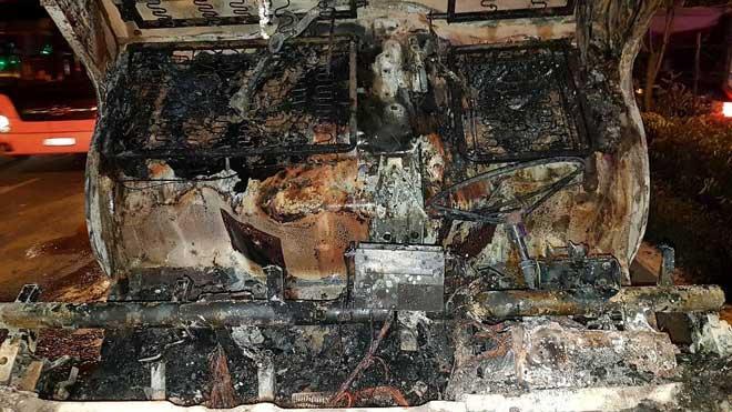 Tại hiện trường, đầu xe tải và một phần thùng xe bị thiêu rụi.