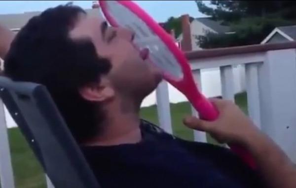 Nam thanh niên lè lưỡi liếm vào chiếc vợt muỗi điện gặp cái kết đắng.