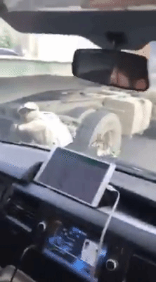 Cụ thể, trong đoạn clip dài 11 giây, nam thanh niên ngồi trên chiếc xe máy cúi rạp đầu để băng qua xe container đang đứng giữa đường.
