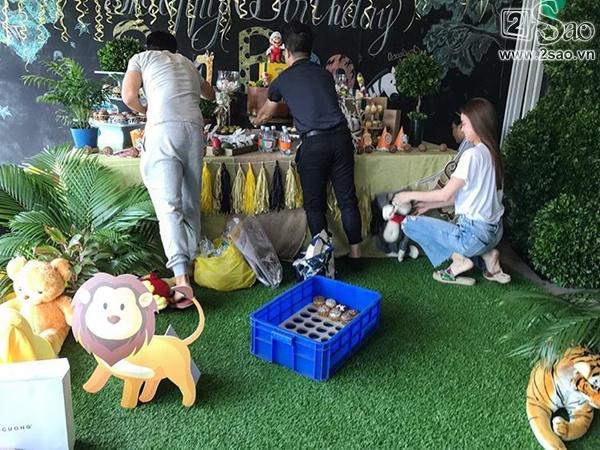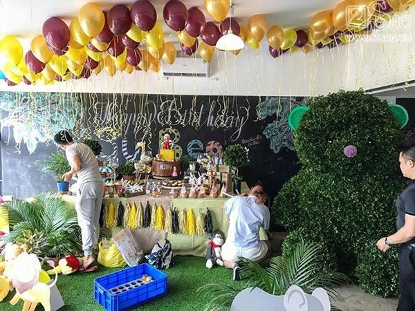 Chính tay Hồ Ngọc Hà trang trí, lo toan cho buổi tiệc của con trai.