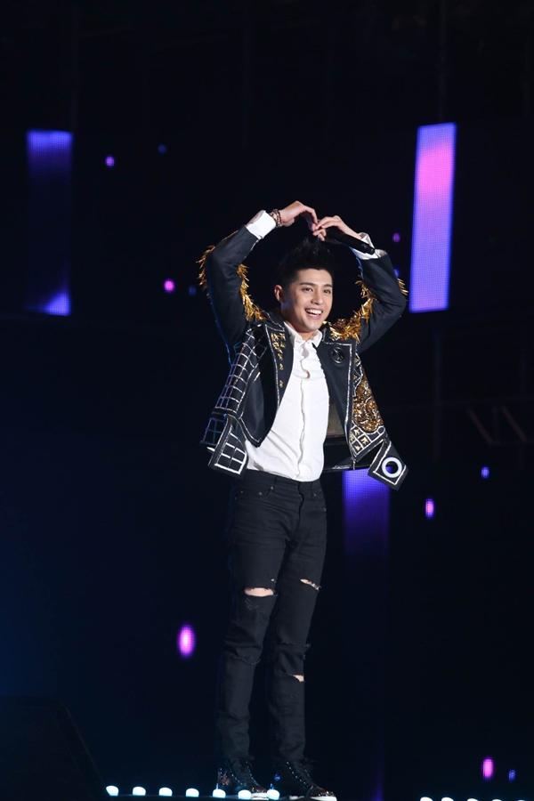 Noo Phước Thịnh còn khiến khán giả dưới sân khấu hò hét khi chào hỏi bằng tiếng Hàn cực kỳ dễ thương.