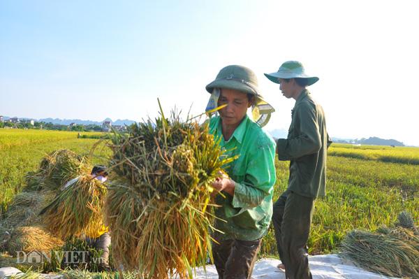 Nông dân thu hoạch lúa rất khấn trương dưới thời tiết nắng nóng như đổ lửa.