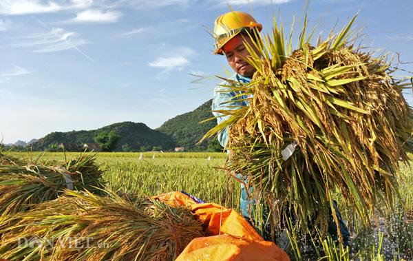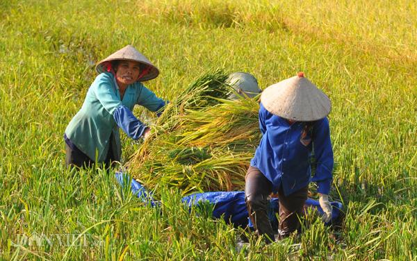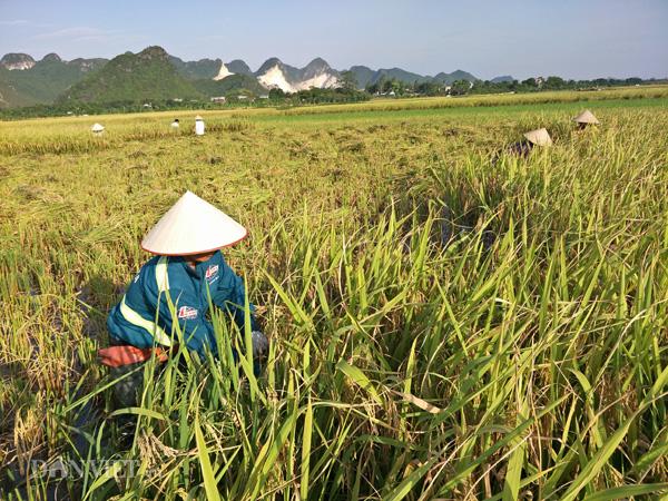 Đối với những khu ruộng trũng, không thể đưa máy xuống thu hoạch được, bà con nông dân phải dùng liềm cắt lúa thủ công. “Nắng nóng quá khiến cho công việc của chúng tôi vô cùng vất vả” – bà Phạm Thị Phán, nông dân ở xã Đông Sơn, TP.Tam Điệp (Ninh Bình) chia sẻ với phóng viên.