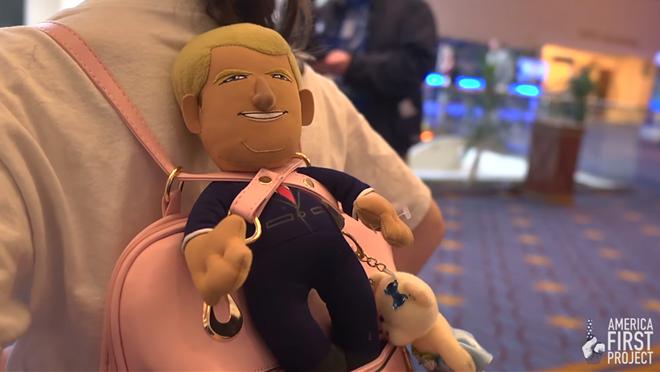 Thậm chí, cô bé còn đeo chiếc cặp sách có hình con búp bê mô phỏng ông Trump tới trường.