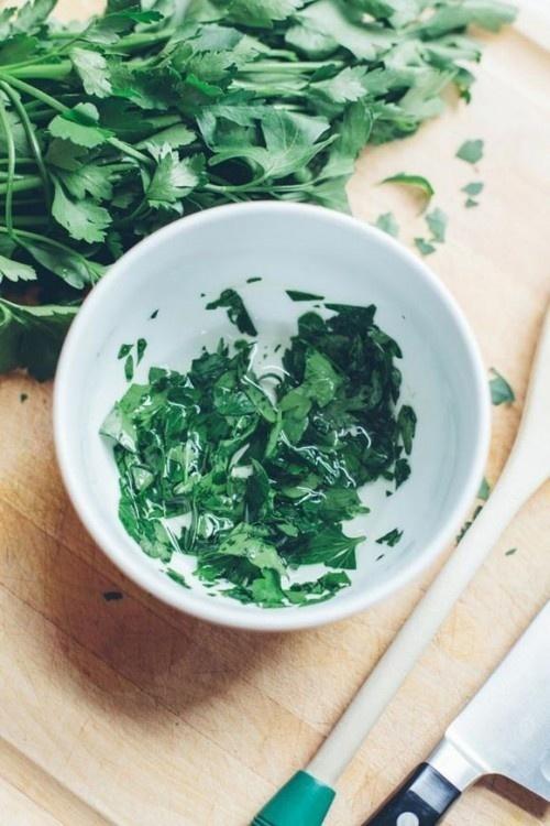 Vitamin C, vitamin K và chất diệp lục có trong rau mùi tây giúp giảm bọng mắt, máu lưu thông tốt hơn, làm sáng vùng da bị thâm. Bạn chỉ cần xay lá mùi tây cho đến khi ra nước rồi dùng bông thấm lên vùng da dưới mắt. Giữ nguyên trong 10 phút. Thực hiện hai lần một tuần quầng thâm sẽ “một đi không trở lại”.
