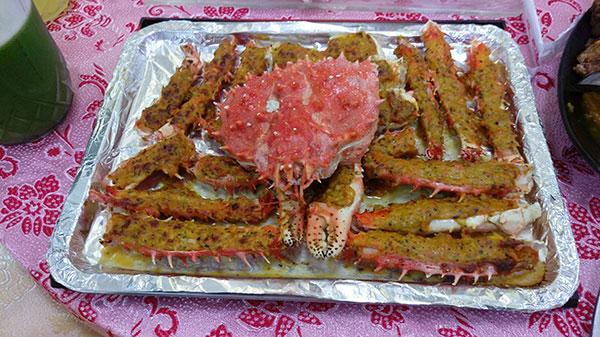 Cỗ cưới có khoảng 50 mâm và tin được không? Mỗi mâm đều có một con cua Hoàng đế Alaska nướng hoàn chỉnh
