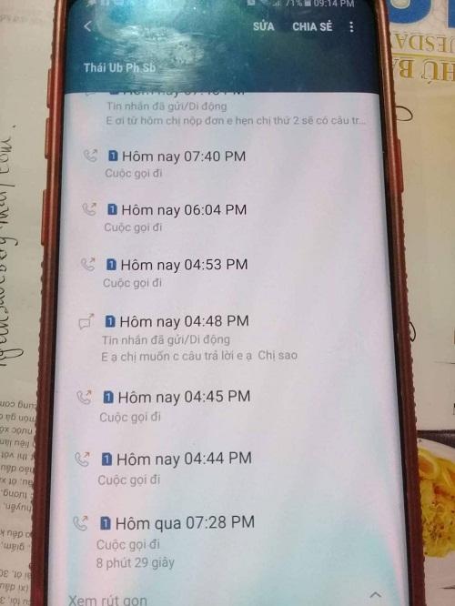 Tôi dự định trong ngày mai (ngày 10/7) sẽ xuống làm việc trực tiếp với phường. Tôi vẫn còn giữ nguyên các cuộc gọi, tin nhắn tôi liên hệ với ông Thái nhưng không được".