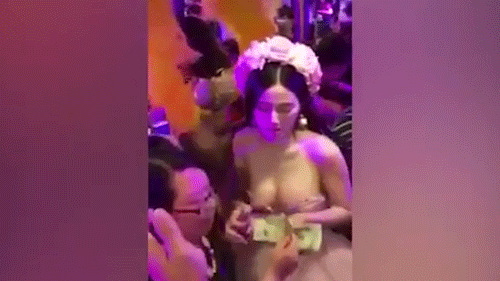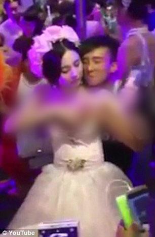 Người đàn ông thứ nhất trong video, sau khi trả tiền được phép thực hiện hành động "thám hiểm" và chụp ảnh cùng cô dâu . Không dừng ở đó, cô dâu còn áp mặt người đàn ông này lên ngực để những người xung quanh chụp ảnh.
