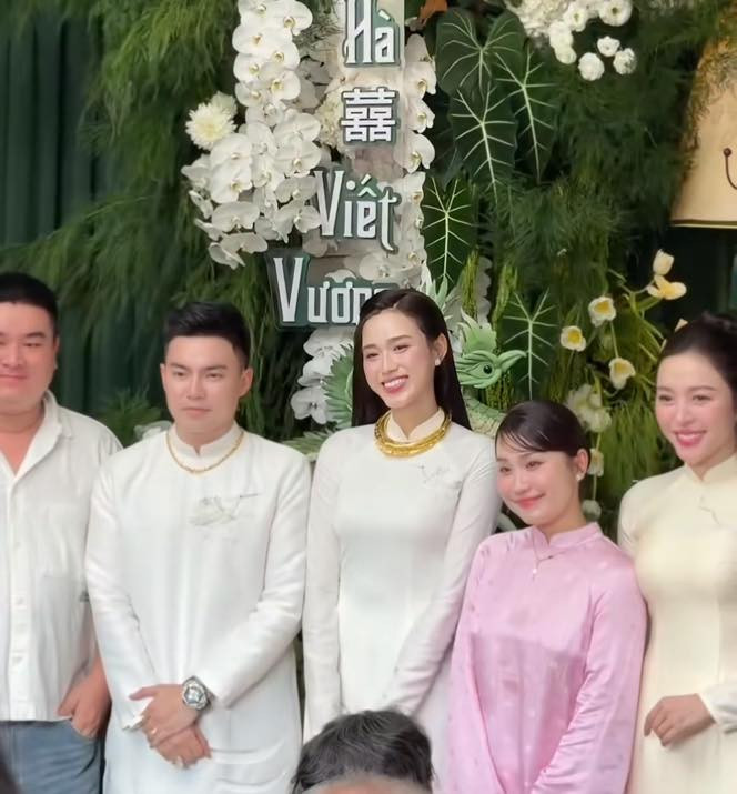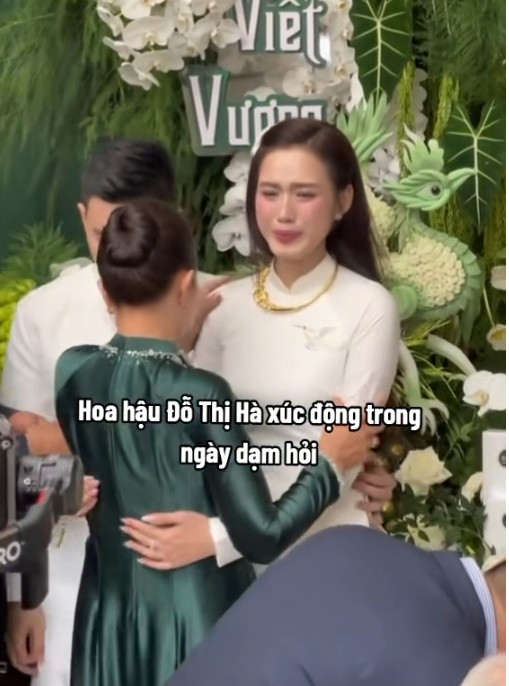 Đáng chú ý, trong lúc mẹ trao vàng cưới làm của hồi môn, Đỗ Thị Hà không khỏi xúc động. Nàng hậu không cầm được nước mắt và ông xã Viết Vương lập tức có động thái an ủi. Chỉ một cử chỉ cho thấy được độ cưng chiều vợ của doanh nhân Viết Vương. Cặp đôi được khen trai tài gái sắc.