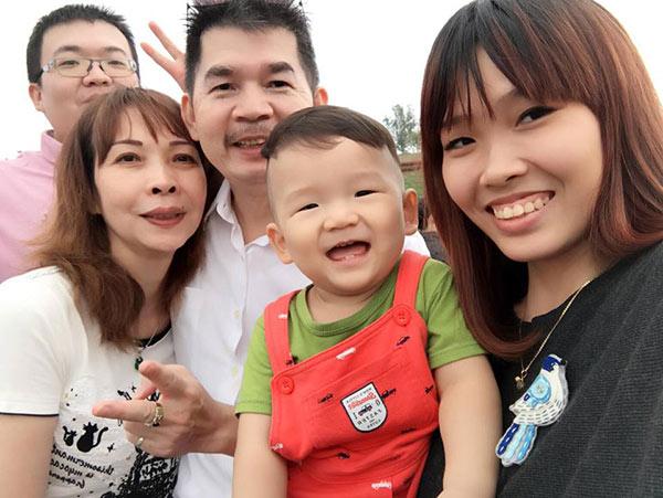 Ngọc Bích bên ông xã người Đài Loan và con trai nhỏ.