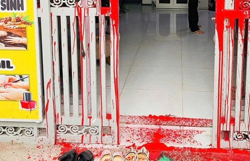 Tại hiện trường, cửa chính 4 cánh dính nhiều mảng sơn vàng lớn, loang dài ra tận lòng đường. Khu vực cửa sau và tường bên hông nhà cũng bị phủ sơn đỏ đậm, chảy xuống nền hẻm. Tổng thiệt hại tài sản do vụ việc gây ra ước tính hơn 22 triệu đồng.