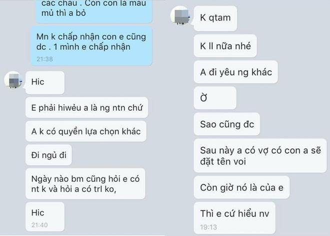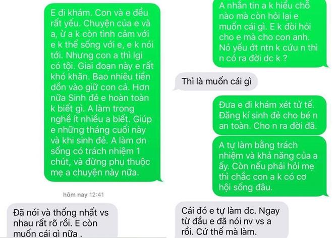 "Em bị động thai 2 lần. Có lần trong người không còn đủ tiền mà nhập viện, và lúc đó là mùng 3 tết âm lịch, em nằm ngoài ghế chờ tại bệnh viện đa khoa Phố Nối không một ai hỏi han. Lúc đó mẹ đẻ em giận, khuyên em không được nên có đuổi em đi. Em đã xin anh cứu lấy con, nhưng anh thờ ơ nói để con đi tìm bố mẹ tốt hơn và tắt máy".
