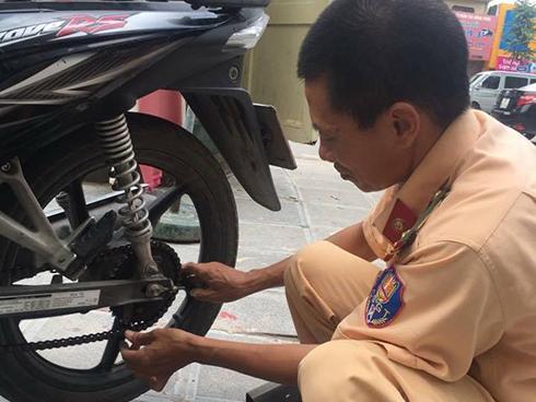 Một đồng nghiệp của anh Dũng là người giúp lắp lại gương chiếu hậu. Cô được cho đi mà không bị giữ xe.