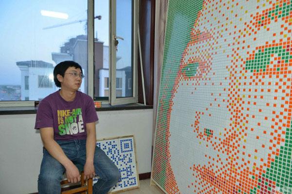 Anh chàng Tong Aonan đã mất 2 tháng cẩn thật xây dựng thiết kế và 3 đêm thức trắng thi công bức chân dung bạn gái bằng các khối Rubik cao 2,6 m, rộng 1,37 m. Số tiền đã tiêu tốn cũng không nhỏ, khoảng 480 USD (~9,6 triệu VNĐ).