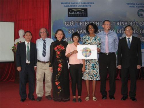 Đại diện ĐH Gallaudet trao học bổng cho Thủy Tiên.