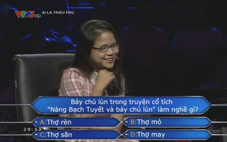 Ngay ở câu hỏi thứ 5, cô gái xinh đẹp Nguyễn Hải yến đã phải nhờ đến sự trợ giúp của khán giả. Câu hỏi liên quan tới câu truyện 'Nàng Bach Tuyết và bảy chú lùn'.