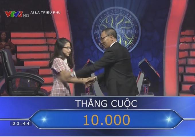 Kết thúc phần thi của mình, cô gái trẻ Nguyễn Hải Yến đã dừng lại ở câu hỏi số 9 và ra về với sô tiền thưởng 10 triệu đồng.
