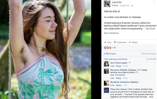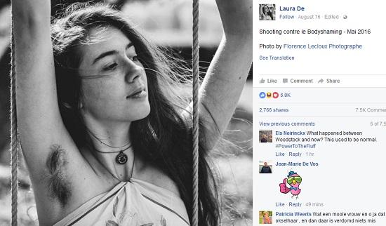 Những bức ảnh tự tin khoe vi ô lông dưới cánh tay của Laura De nhận được hàng nghìn like và share trên mạng xã hội