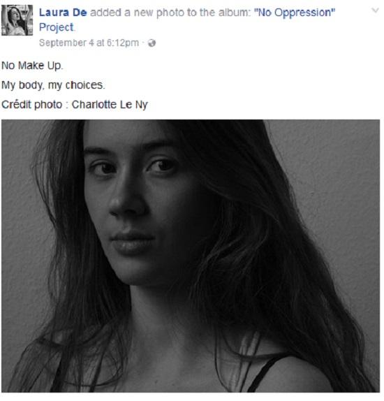 Đáp trả lại cư dân mạng, Laura viết "Tôi chỉ là một cô gái quyết định làm những thứ cô ấy muốn với cơ thể của mình. Và kết quả là tôi đã nhận được sự dè bỉu, xúc phạm. Tôi được biết rằng ở Pháp và Bỉ, phái đẹp không cần nữ quyền bởi phụ nữ chúng tôi vốn dĩ đã có những quyền lợi đó. Thế nhưng, việc này đã chứng minh điều đó hoàn toàn sai lầm.