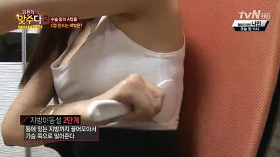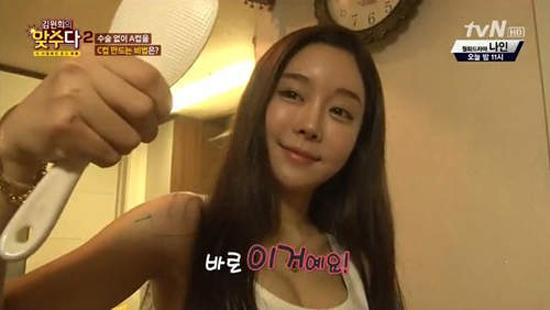 Sau đó, Min Young đã nghĩ ra một cách nâng ngực vô cùng độc đáo. Đó là dùng muôi xới cơm mát xa từ nách đến ngực, rồi từ ngực quay ngược trở lại nách trong vòng 2 tiếng đồng hồ.