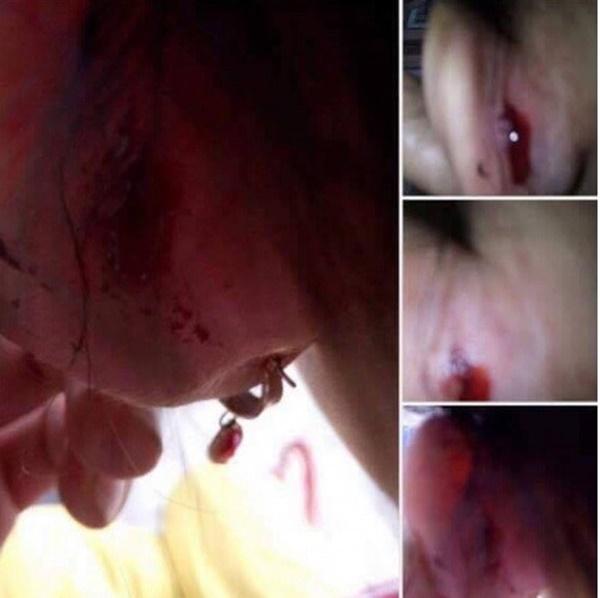 Hình ảnh tai cháu bé bị chảy máu được gia đình đưa lên Facebook.