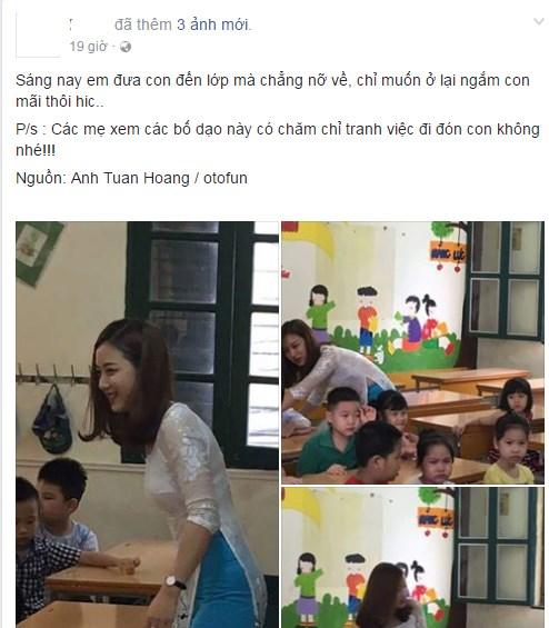 Những ngày qua, hình ảnh một cô giáo viên tiểu học xinh đẹp "níu" chân biết bao ông bố ngày đầu đưa con đi học mà "chẳng nỡ về" đã được dân mạng truyền tay nhau "rầm rộ".