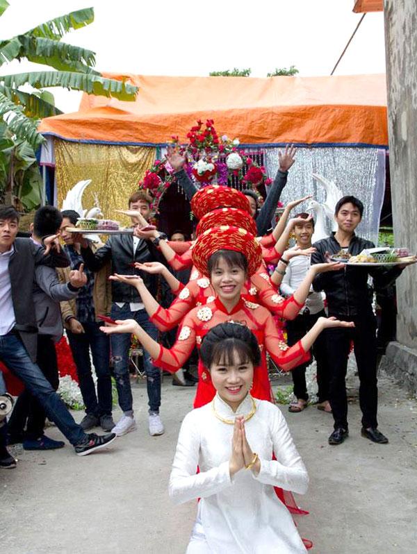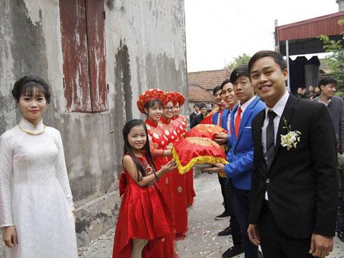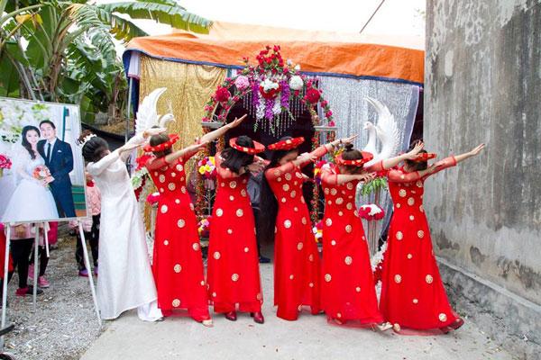 Trong lễ ăn hỏi, ngoài cô dâu chú rể; đội bê tráp được nhiều người chú ý hơn cả. Đây là những nam thanh, nữ tú được cô dâu, chú rể “chọn mặt gửi vàng”. Thế nhưng cô bé hot girl nhí xuất hiện trong đội hình đỡ tráp của nhà gái tại đám hỏi được trang mạng xã hội chia sẻ vài ngày trở lại đây lại khiến cư dân mạng chú ý theo một cách khác. Theo đó, khác với "đàn chị" của mình đều diện áo dài, khăn xếp, cô bé này nổi bật với chiếc váy xòe đỏ rực rỡ. Chủ nhân của lễ ăn hỏi đó là cô dâu Nguyễn Phương và chú rể Trần Vinh, cả hai đều sống tại Nam Định.