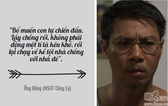 Tuy nhiên, có một nhân vật dù đất diễn không nhiều nhưng lại là một trong những nguyên nhân khiến Vân phải nhẫn nhịn sống cuộc đời tù túng. Và ông cũng là người đau khổ nhất khi phải chứng kiến cảnh con gái mình rơi nước mắt vì cuộc hôn nhân đổ vỡ. Đó chính là nhân vật ông Bằng của NSUT Công Lý.