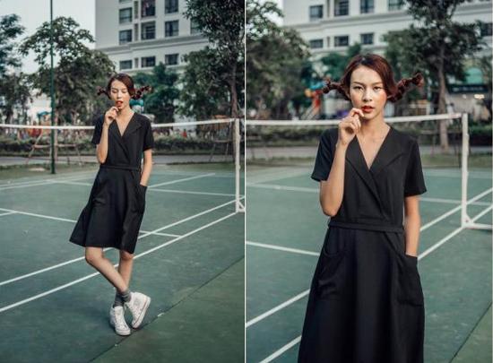 Phong cách nhẹ nhàng và nữ tính cùng váy đen giản dị.