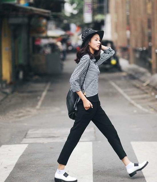 Quần tây, áo kẻ caro, giày nam tính, ba lô và mũ fedora là combo tuyệt đẹp dành cho cô nàng yêu thích vẻ độc đáo, mới lạ.