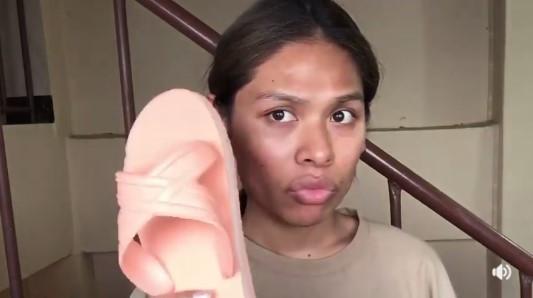 Cô gái trang điểm bằng dép gây sốt cộng đồng mạng.