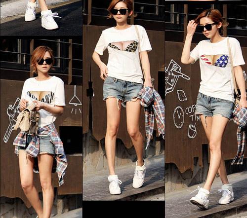 Các bạn trẻ châu Á lựa chọn kiểu áo tế nhị hơn, như áo in hình vòng 1 lấp ló hoặc vòng 1 được thể hiện bằng nét vẽ hoạt hình hóm hỉnh, giảm bớt sự phản cảm của trang phục.