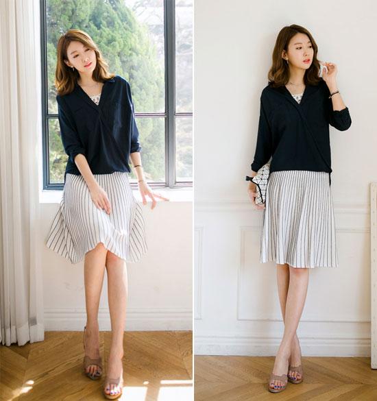 Thay vì lựa chọn những chiếc váy áo cổ tròn hay cổ thuyền, bạn nên "kết thân" với áo cổ chữ V hoặc cổ đổ. Thiết kế này sẽ tạo cái nhìn kéo dài theo chiều dọc cơ thể và đương nhiên nó sẽ tạo nên cảm giác phần trên của bạn thon thả.