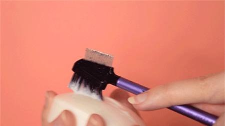 Đầu tiên, bạn làm ướt bánh xà phòng rồi chà nhẹ cây cọ lông mày lên đó.