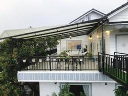 Nằm trên đồi, căn biệt thự có phần ban công nhô ra ngoài và đứng tại đây có thể ngắm được cảnh thung lũng bên dưới và chụp ảnh “sống ảo” với mây trời lơ lửng phía trên.