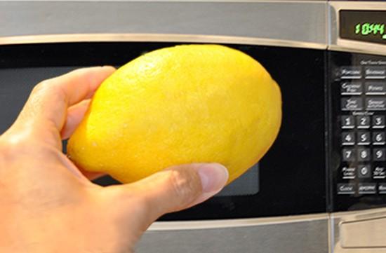 Trước khi vắt chanh hoặc cam, hãy cho chúng vào lò vi sóng và làm nóng 10 giây. Lò vi sóng sẽ nới lỏng các sợi bên trong trái cây và giúp bạn có thể vắt được đến giọt cuối cùng một cách dễ dàng.