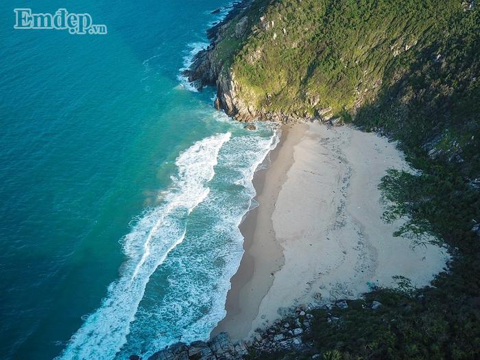 Một bãi cát ngoằn ngoèo ôm trọn lấy eo biển xanh mát đẹp đến nức lòng.