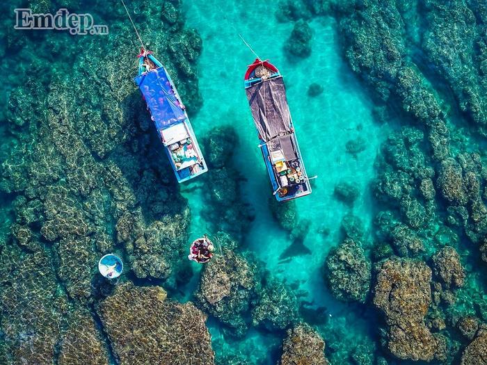 Không thể cưỡng lại trước vẻ đẹp thơ mộng này, tụi mình nhanh chóng thuê thuyền để đi khám phá quanh đảo. Giá thuê tàu cũng không quá cao, chỉ 40.000 đồng/người. Dạo một vòng quanh đảo, mình cảm nhận được rõ rệt nhịp sống và tính cách của người dân làng chài đơn giản và chân chất.