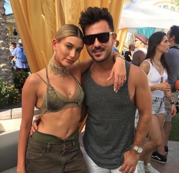 Hailey Baldwin lại vô cùng gợi cảm diện couple bra kết hợp choker và bông tai to bản.