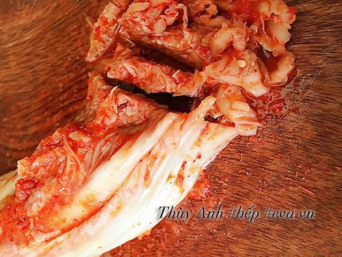 Bước 2: Kim chi thái vừa ăn khoảng 1-2cm.
